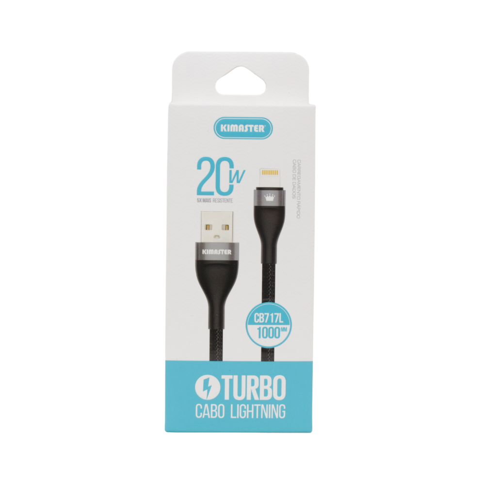 O Cabo Turbo Lightning Kimaster é a escolha perfeita para quem busca velocidade, resistência e confiabilidade no carregamento e transferência de dados dos seus dispositivos Apple.