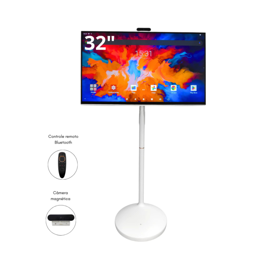 Ideal para empresas, escolas, lojas, eventos e até uso residencial premium, a tela de 32” entrega mais impacto visual e presença, elevando a experiência do usuário.